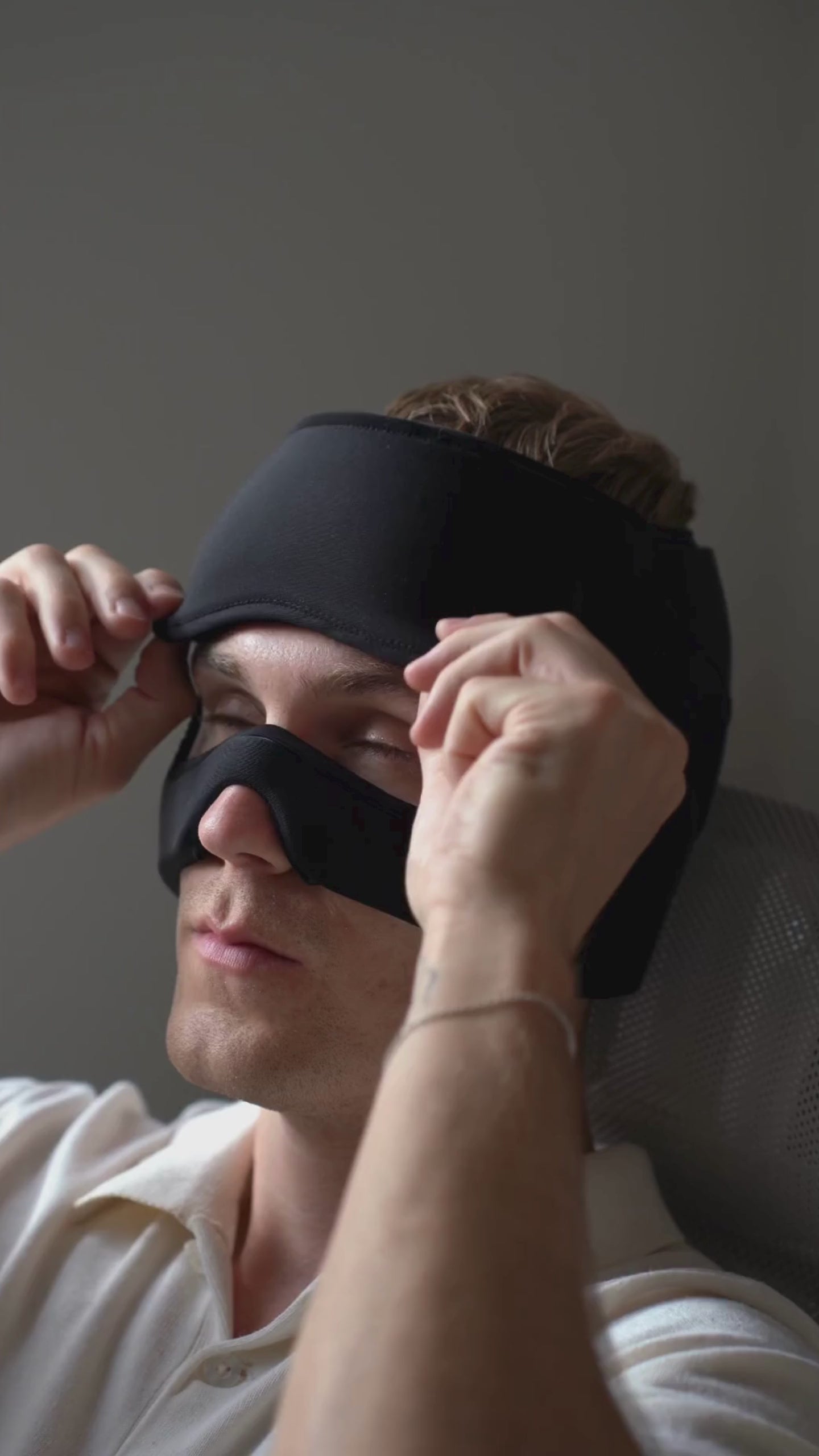 Vores migrænemaske består af en hovedmaske og en 3D øjenmaske, som giver ekstra ro og trykaflastning. Du kan bruge dem sammen for fuld mørklægning, eller bruge hovedmasken alene, hvis du vil fortsætte dagen derhjemme og stadig få lindring, uanset om du slapper af, læser eller ordner små praktiske gøremål.
