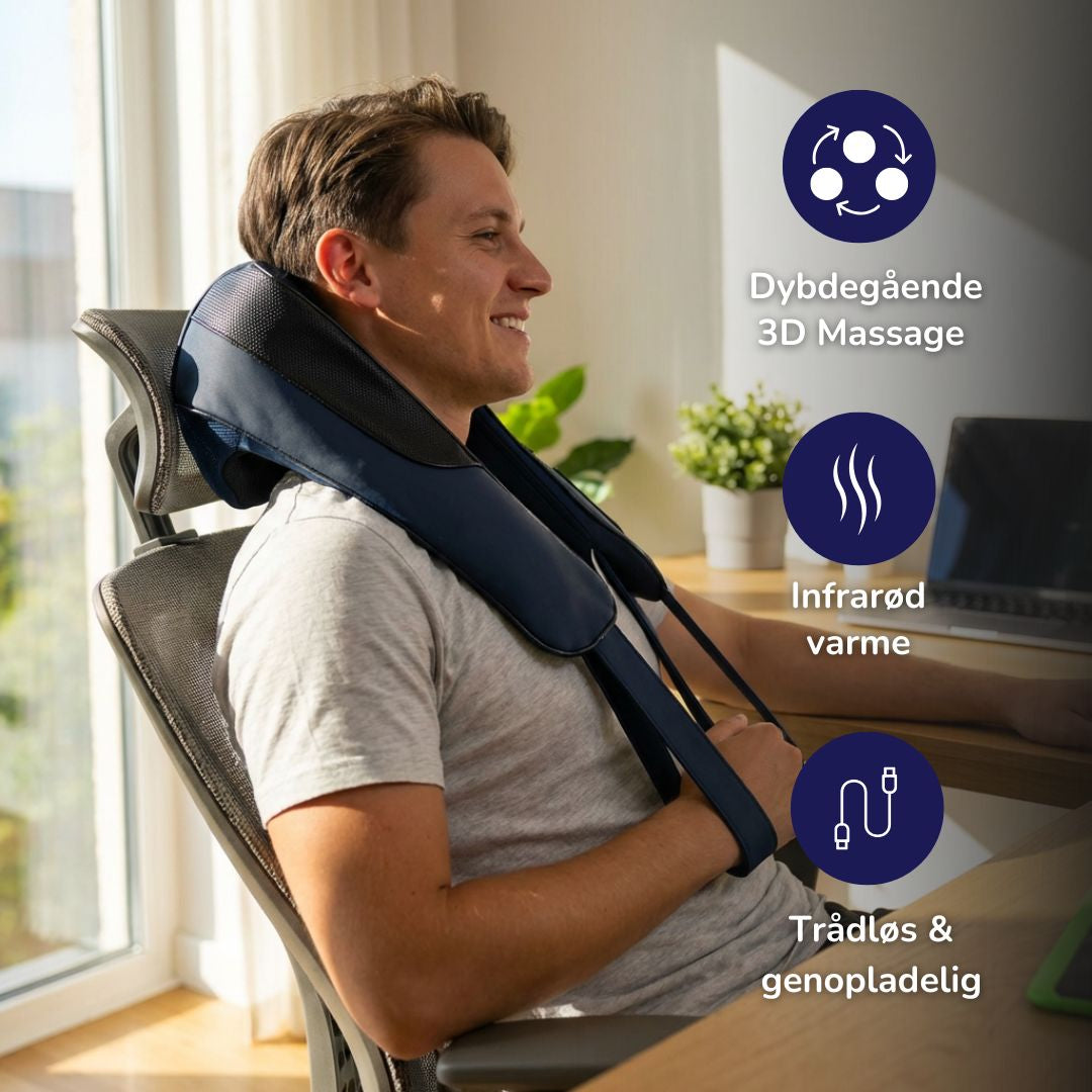 Feevra Nakkemassager er lavet til at give dybdegående 3D massage i nakke og skuldre, når du føler dig øm, spændt eller træt i området. Mange bruger den efter en lang dag ved skrivebordet, efter træning eller når nakken føles tung efter søvn.